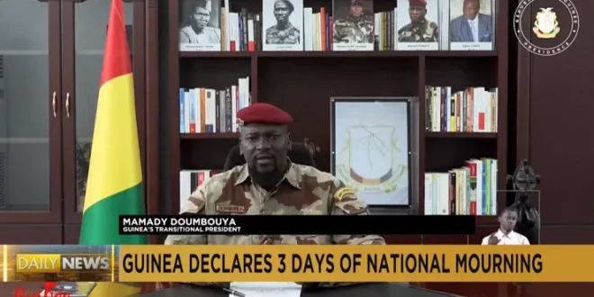 Le colonel Mamady Doumbouya, a annoncé mercredi soir un deuil national de trois jours en hommage aux victimes de l’explosion et l’incendie meurtriers du principal dépôt de carburant du pays à Conakry.