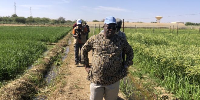 Le représentant de la FAO était en visite de terrain à Ndiaye dans les parcelles expérimentales d’Africarice, une ONG africaine orientée dans la recherche pour le développement de la culture du riz par l’introduction notamment de nouvelles variétés.